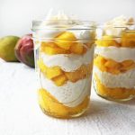 Add about a 1/4 cup of mangos to the bottom of a mason jar. Layer with 2-3 tablespoons of coconut cream. Keep alternating until you hit the top of the jar.